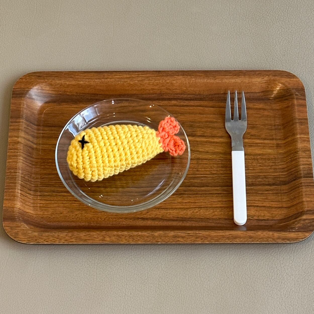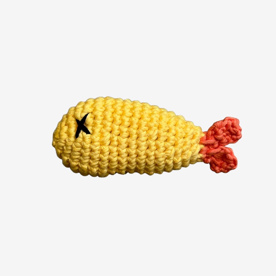本物そっくりの「エビフライ」の形をした、愛らしい犬用おもちゃです。