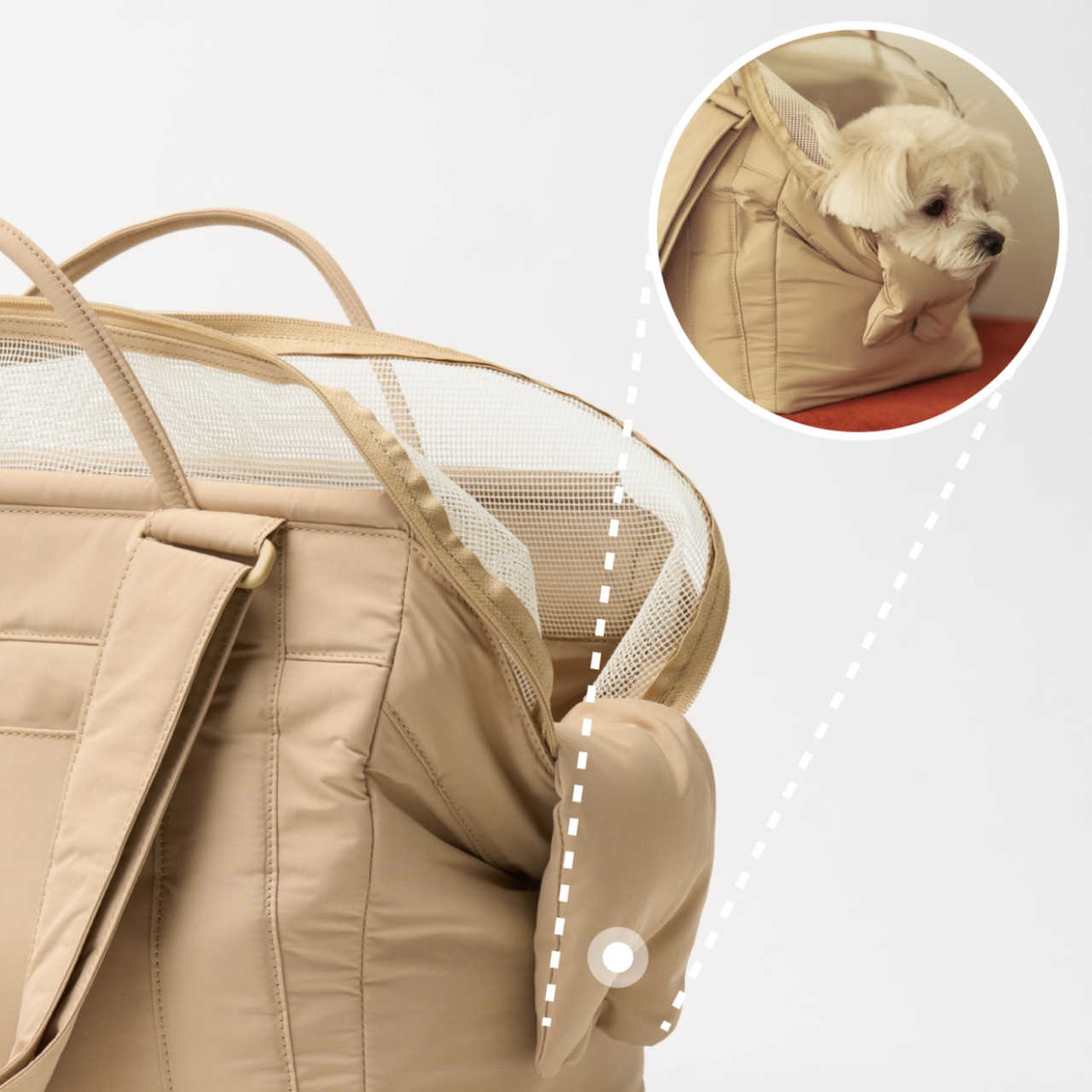 ペット用品と思えないおしゃれなデザインで、普段使いにも馴染むバッグ。