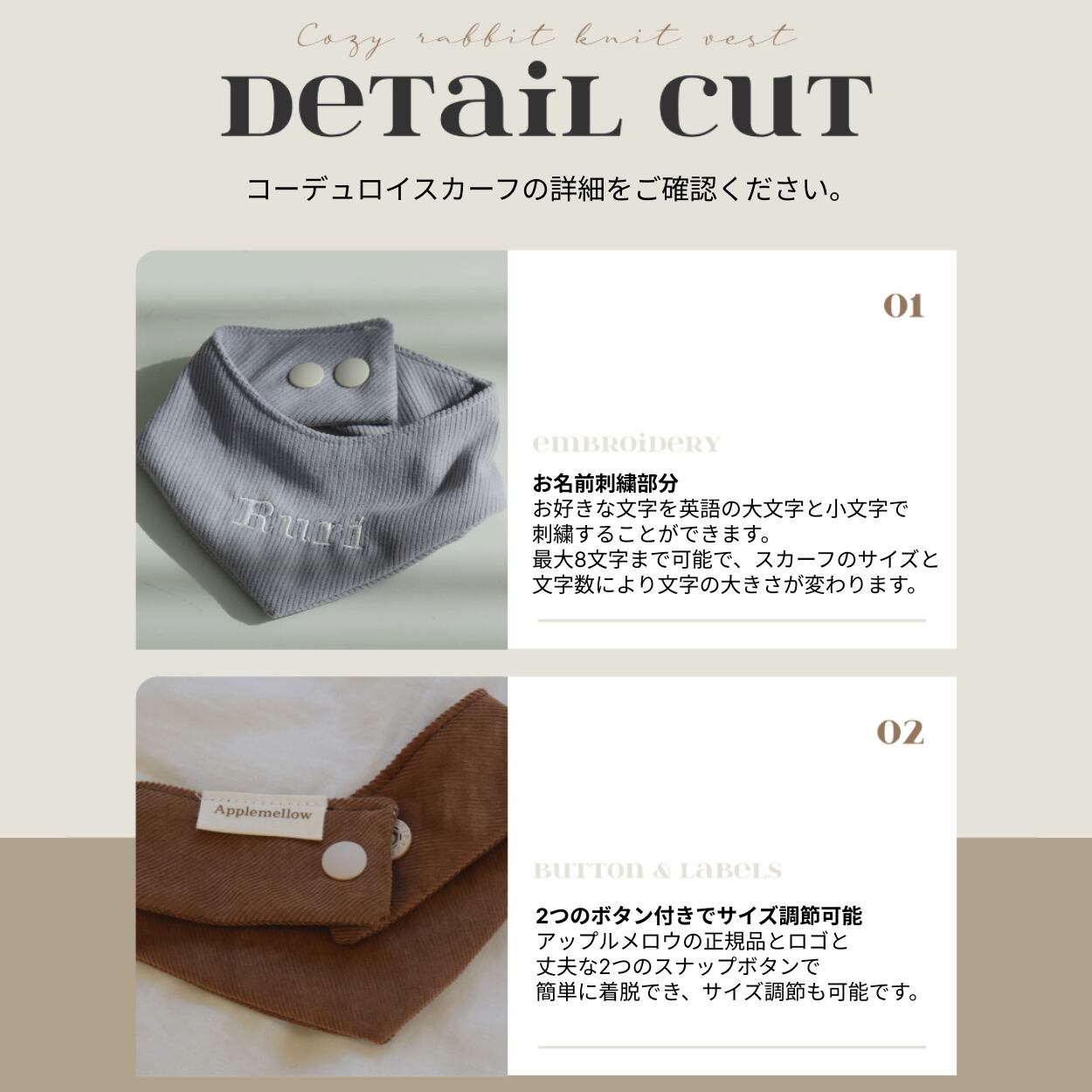 予約【Apple mellow】お名前刺繍 コーデュロイ スカーフ(12 color / 7 size)